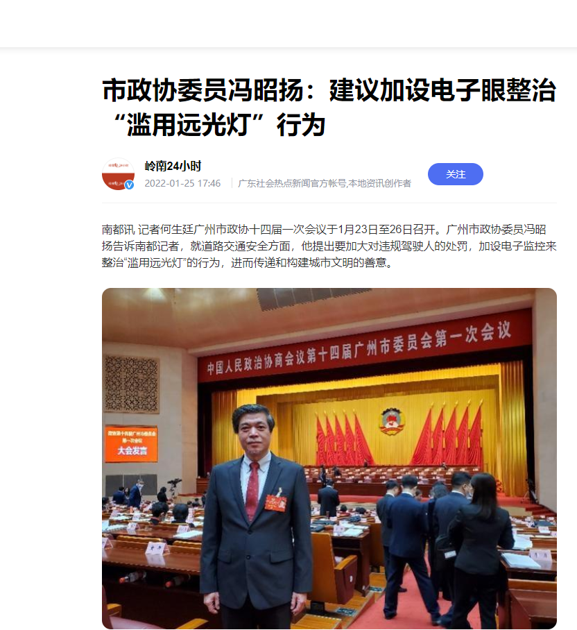 广州市政协委员冯昭阳提案建议加设电子眼治理远光灯滥用。他认为,“滥用远光灯”的行为一方面严重影响道路交通安全,另一方面,从道路文明的角度来看,“滥用远光灯”对逆向或同向的驾驶人均具有明显的“攻击性”,会导致受影响的驾驶人产生愤怒等消极情绪。