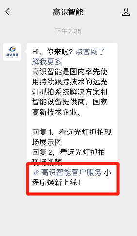 关注高识智能公众号,在欢迎语中可点击跳转小程序